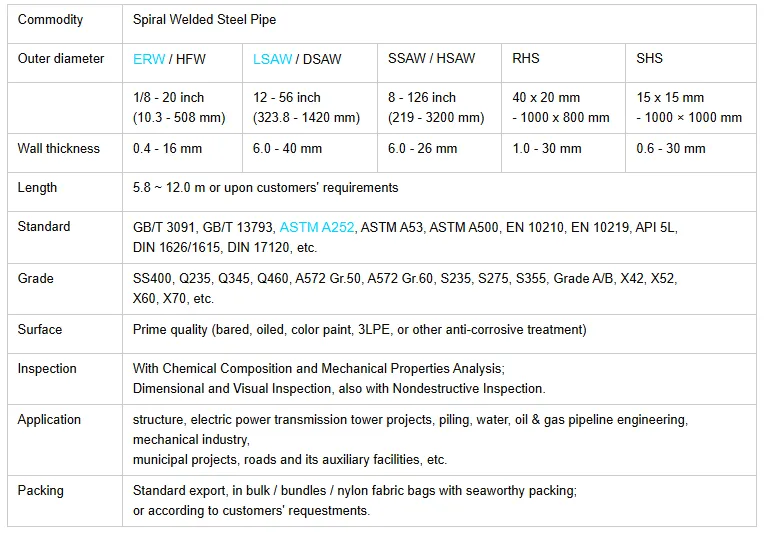| ASTM A252 | Tuberías soldadas y sin costura para pilotes | |